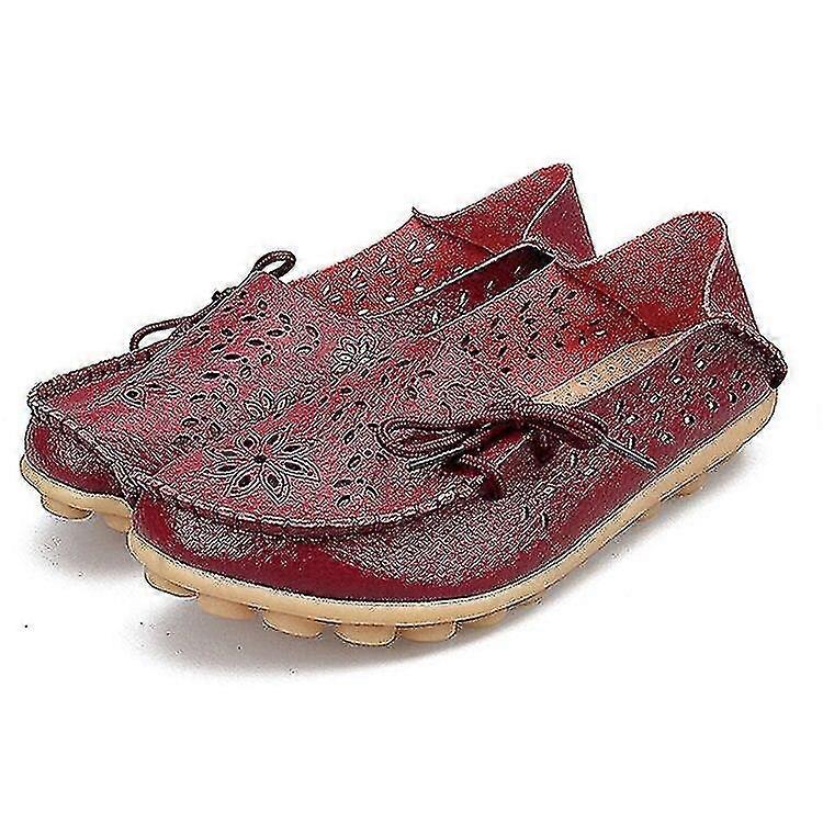 Breathable Cut Out Leather Moccasins for Women - Wine Red