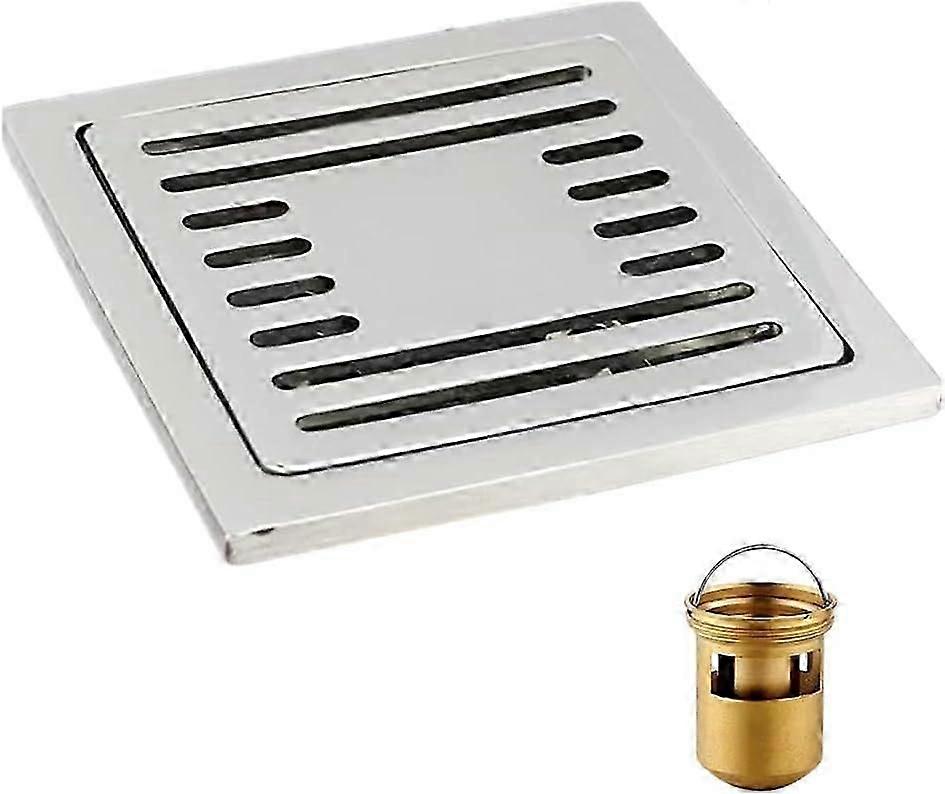 Floor Drain, Vertical Floor Drain, Square, Anti-Odor, Stainless Steel, 100 x 100 mm, for Bathroom, Garden, Laundry, Outdoor Kitchen, Balcony