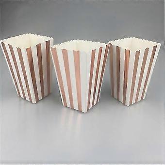 Pudełka na popcorn z papieru w kolorze różowego złota na imprezy, 24 szt., wzór w pionowe paski