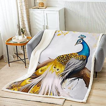 Pawi polar Koc do rzucania na łóżko Sofa D Zwierzę Pluszowy koc Pawie pióra Projekt Koc Sherpa Kwiatowy Ciepły Puszysty Koc