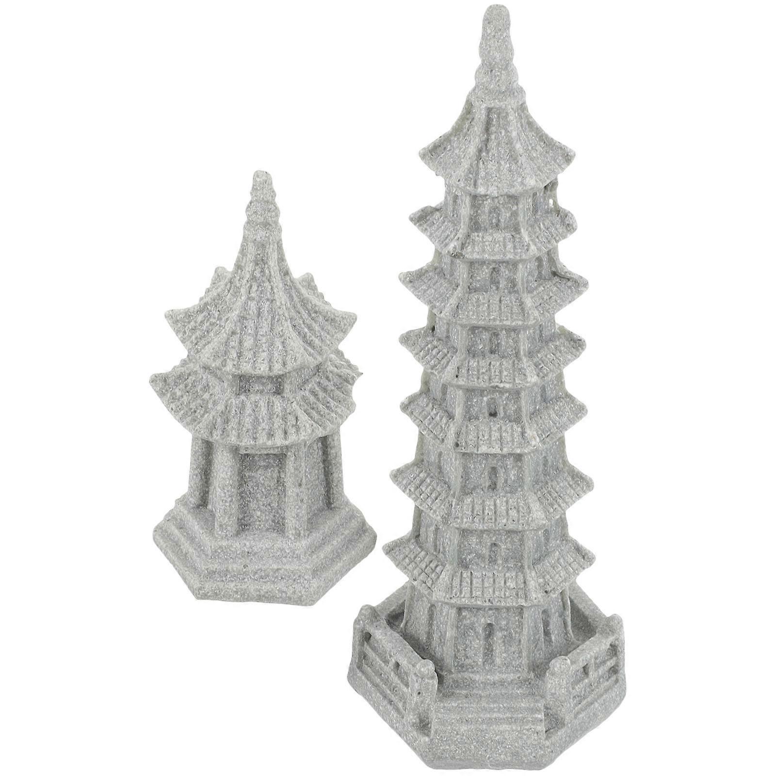 Pavilion Statue Decor Miniature Garden Decoration Outdoor Decoration Sandstone Dark Grey with 2Pcs
