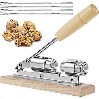 Pecan Nut Cracker Tool For Easy Cracking Heavy Duty Nut Sheller With Wood Base Handle And Fork Adjustable Desktop Nut Crackers Desktop Stainless Steel