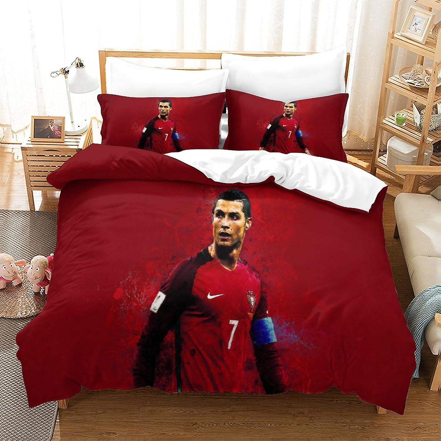 PGtaa 3D Cristiano Ronaldo Duvet Cover Set Football Star Bedding Lightweight Quilt Cover with Zipper Closure for Kids Teens Adults Bedding Decro (3PCs