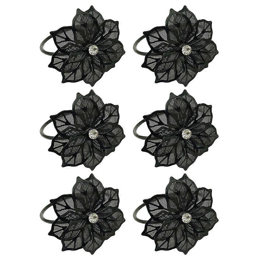 Black Napkin Ring Flower Shape Halloween Party Table Decor Reusable 6Pcs
