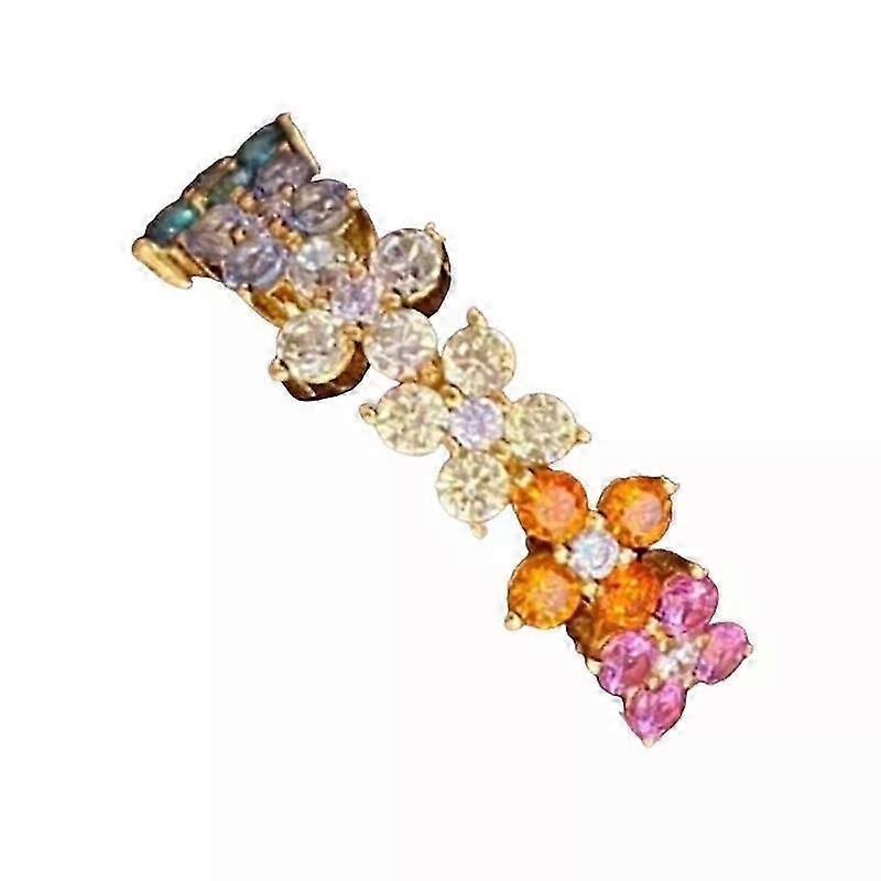 Four Leaf Grass Opening Rings, Unique Adjustable Eye Catching Alloy Rings with Colorful Diamonds for Women