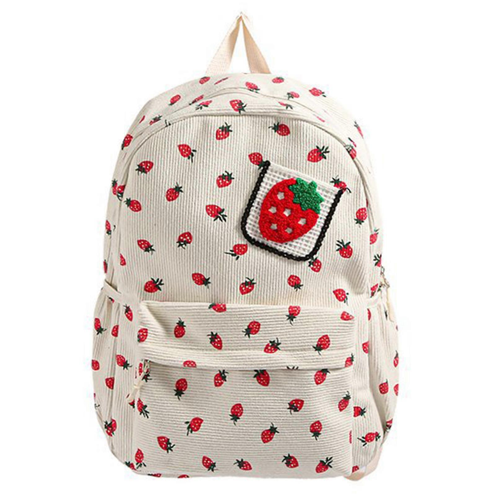 Large Capacity Backpack Teens Lovely Strawberry Daypacks Student School Bag Japanese Styles Backpack Travel Bag White