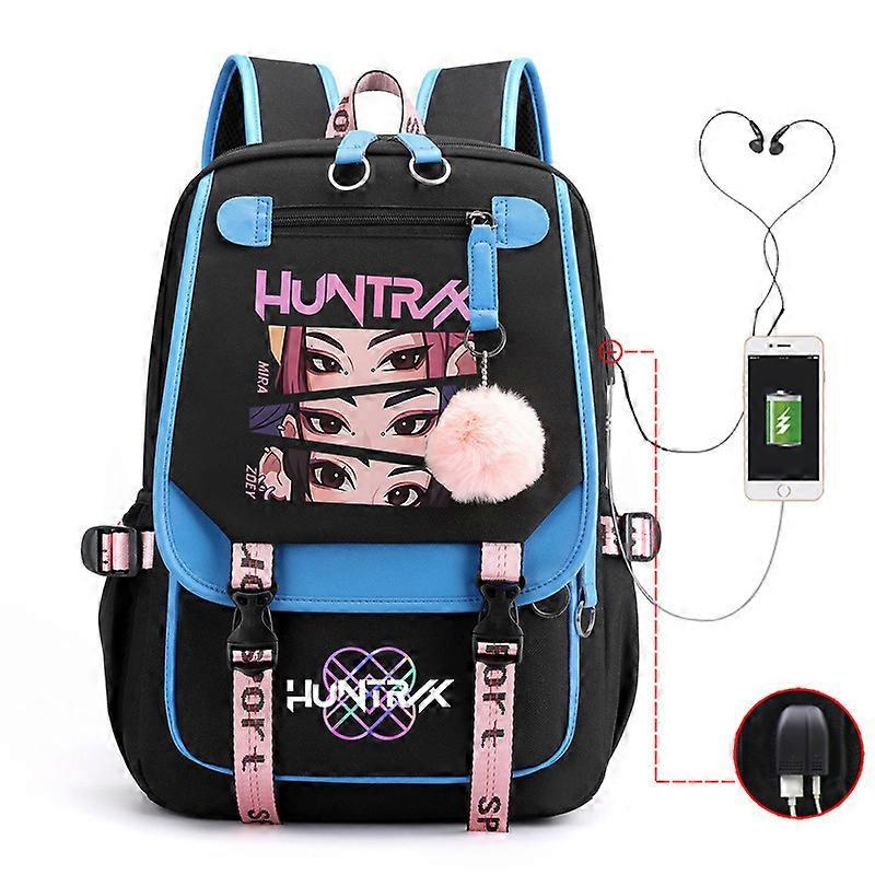 Demon Hunter Kpop Print Fashion Student Backpack Large Capacity Contrast Color USB Backpack