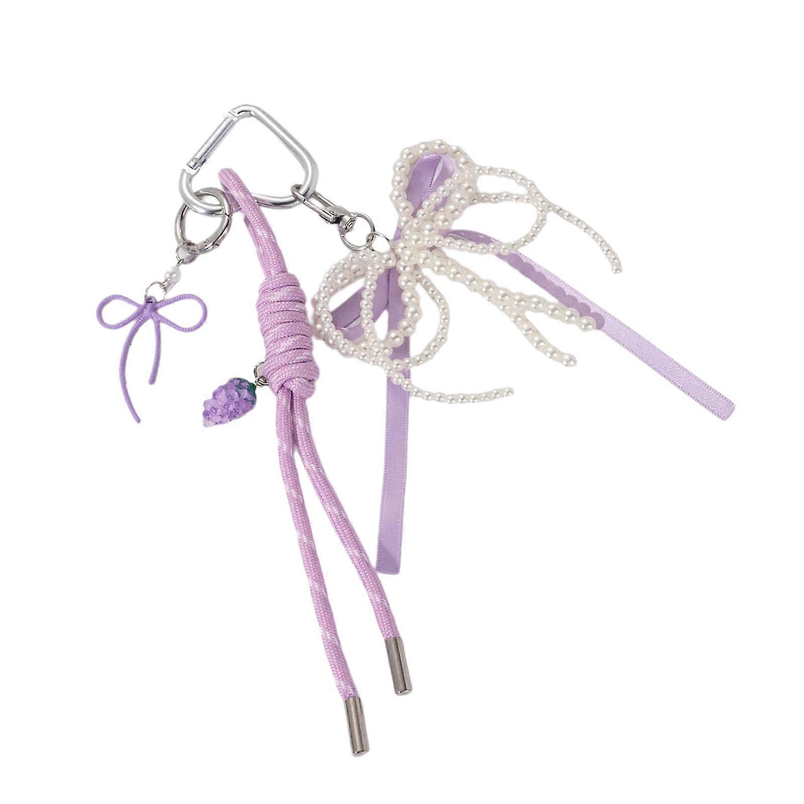 Braided Rope Bag Charm Lovely Heart Keychain Handbag Pendant Ornaments Bows Keyrings Fashion Keyholders Purple