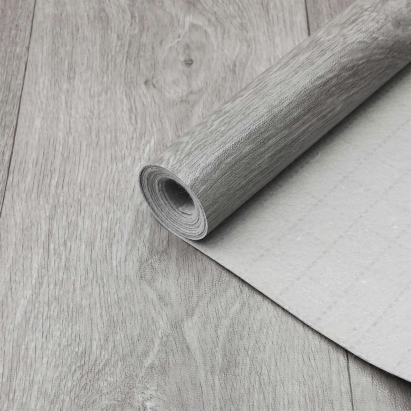 Vinyl Flooring Roll Plank Decor Slip Resistance Durable Grey Wood Grain 200.00X53.00X0.40CM 1Pcs