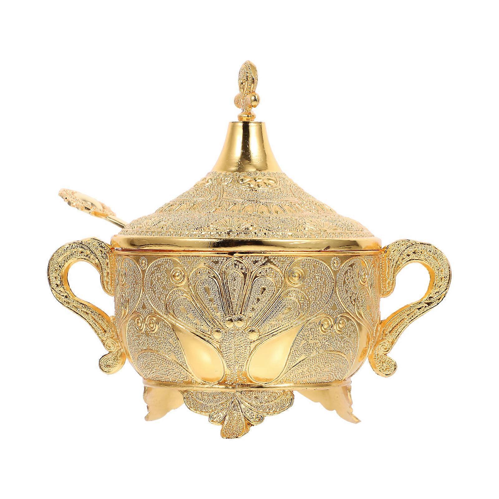 Seasoning Storage Container Zinc Alloy Storage Case Carved Seasoning Box Homeowners Golden 14.5X13X13CM Condiment Storage 1Pc