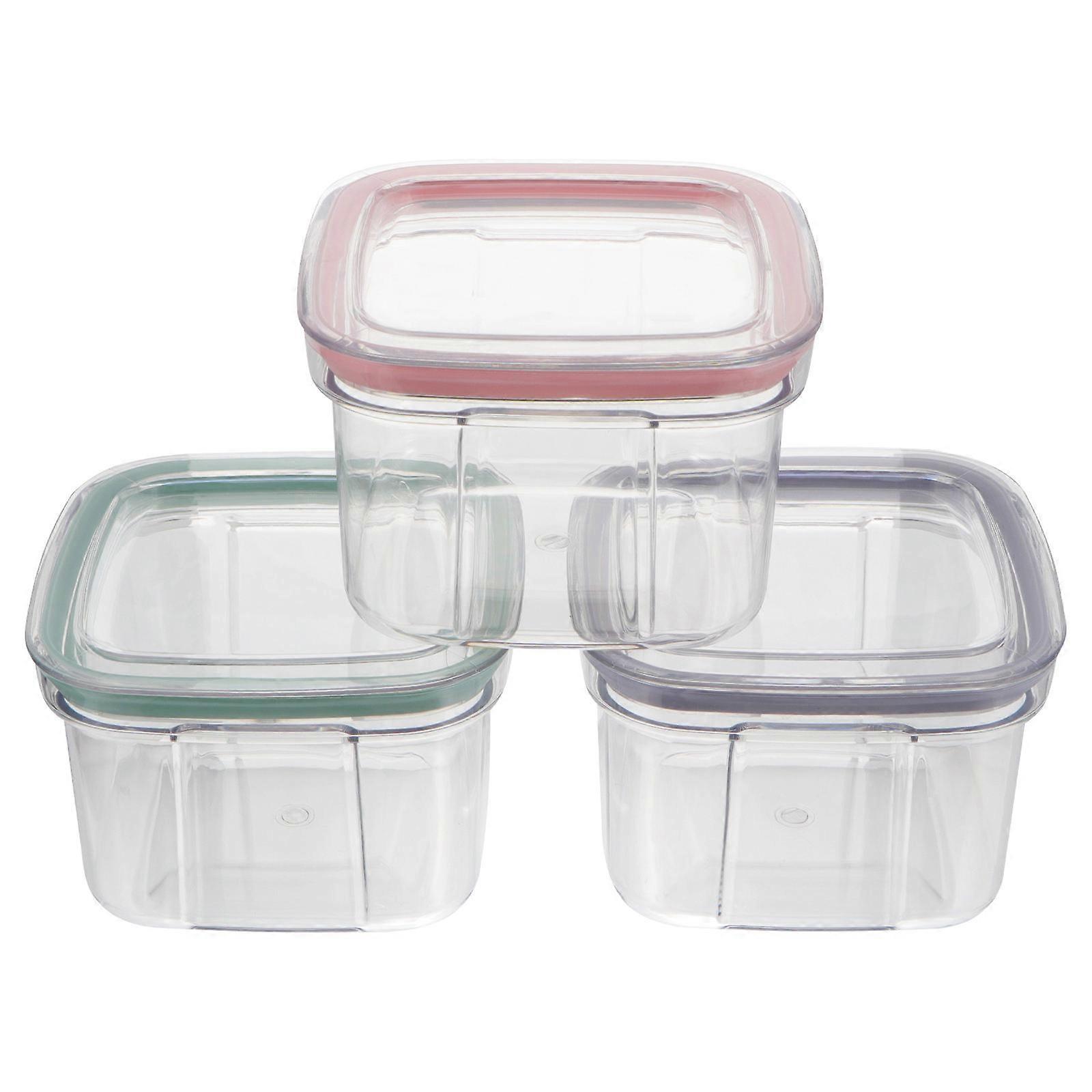 Food Storage Containers Airtight Sealing Large Capacity Square Transparent Pink 3Pcs