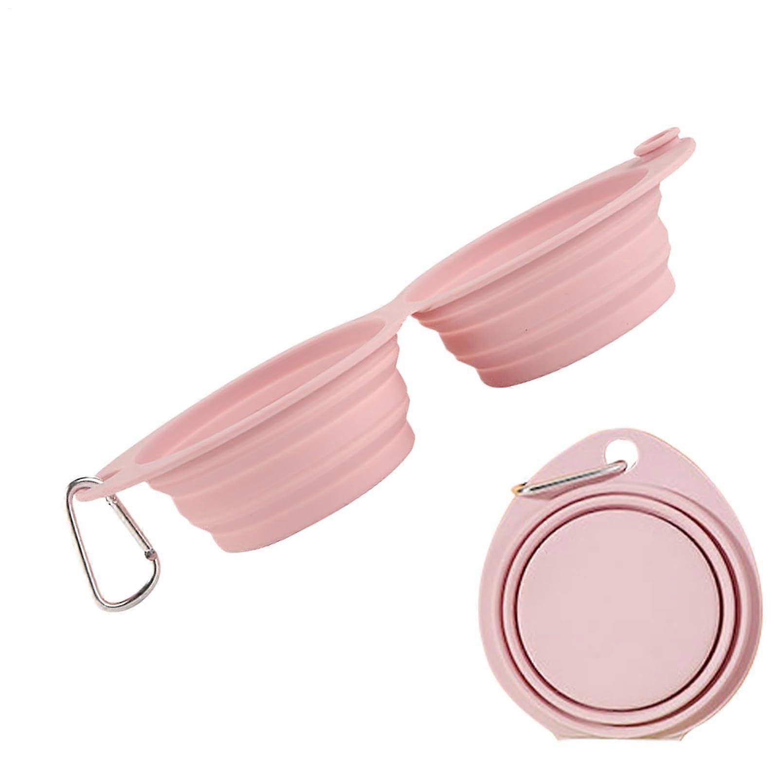 Portable Water Bowl For Dogs, Double-Dish, Foldable Feeding Container, Camping & Travel, Pink, Puppies & Kittens