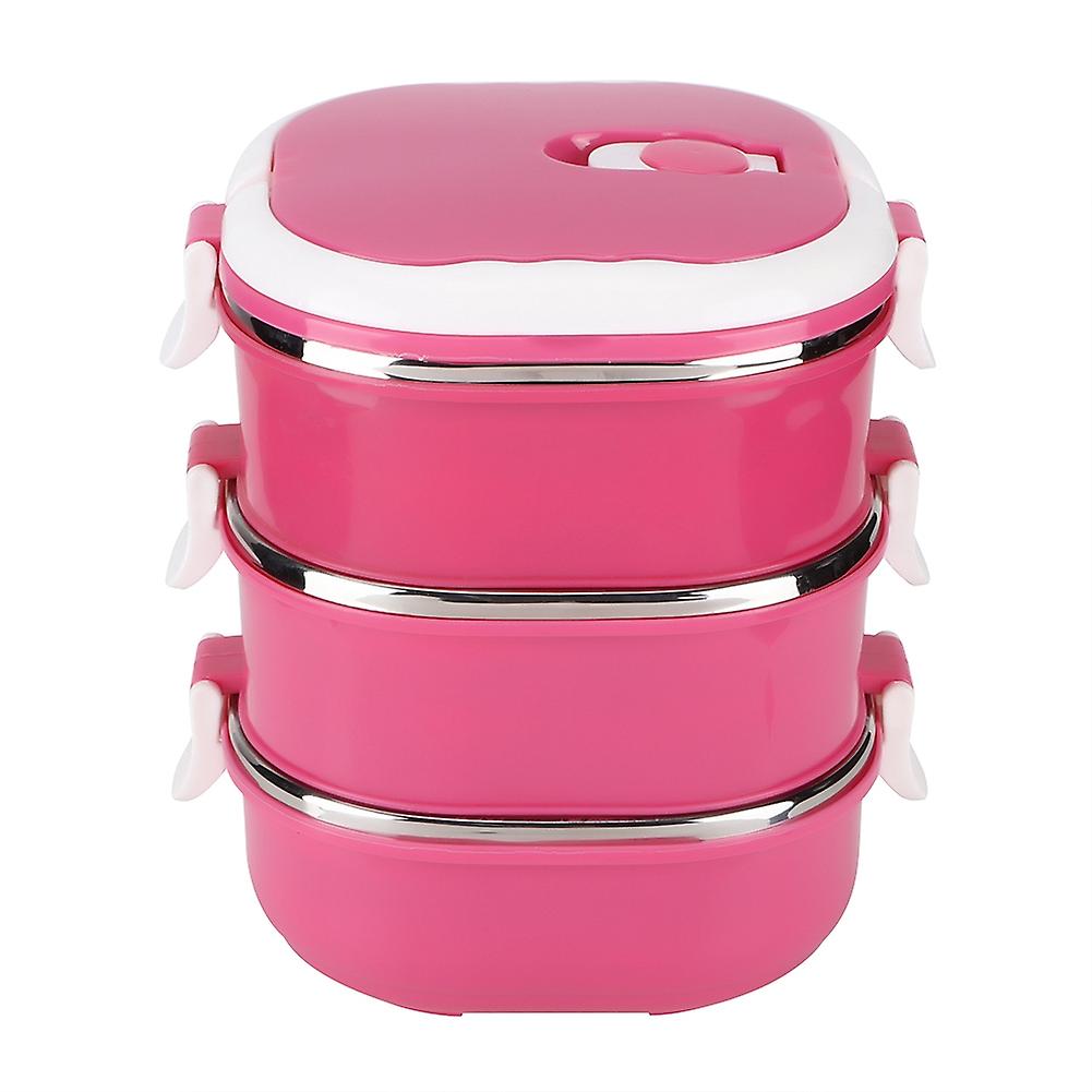 Stainless Steel Portable Insulated Food Storage Box Dinner Lunch Container Red for Students TravelThree Layer