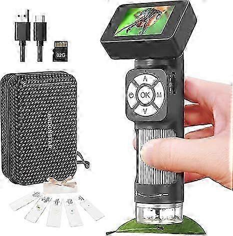 Portable Pocket Microscope Kit for Kids and Adults with 2" LCD Screen, Mini Handheld Digital Microscope,32GB SD Card Included