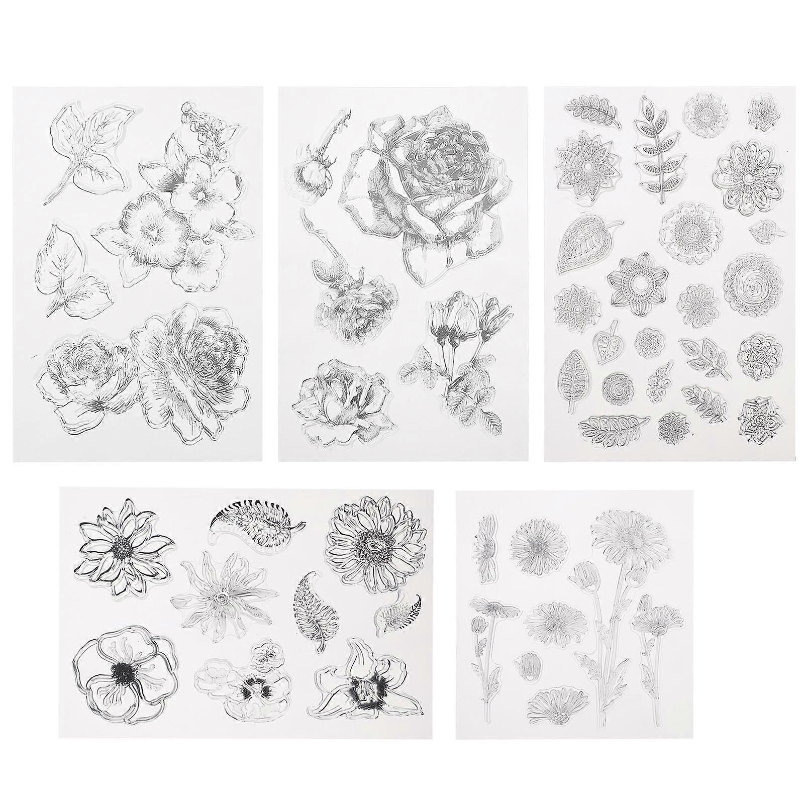 Flower Clear Stamps Retro Style for Decoration 10Pcs