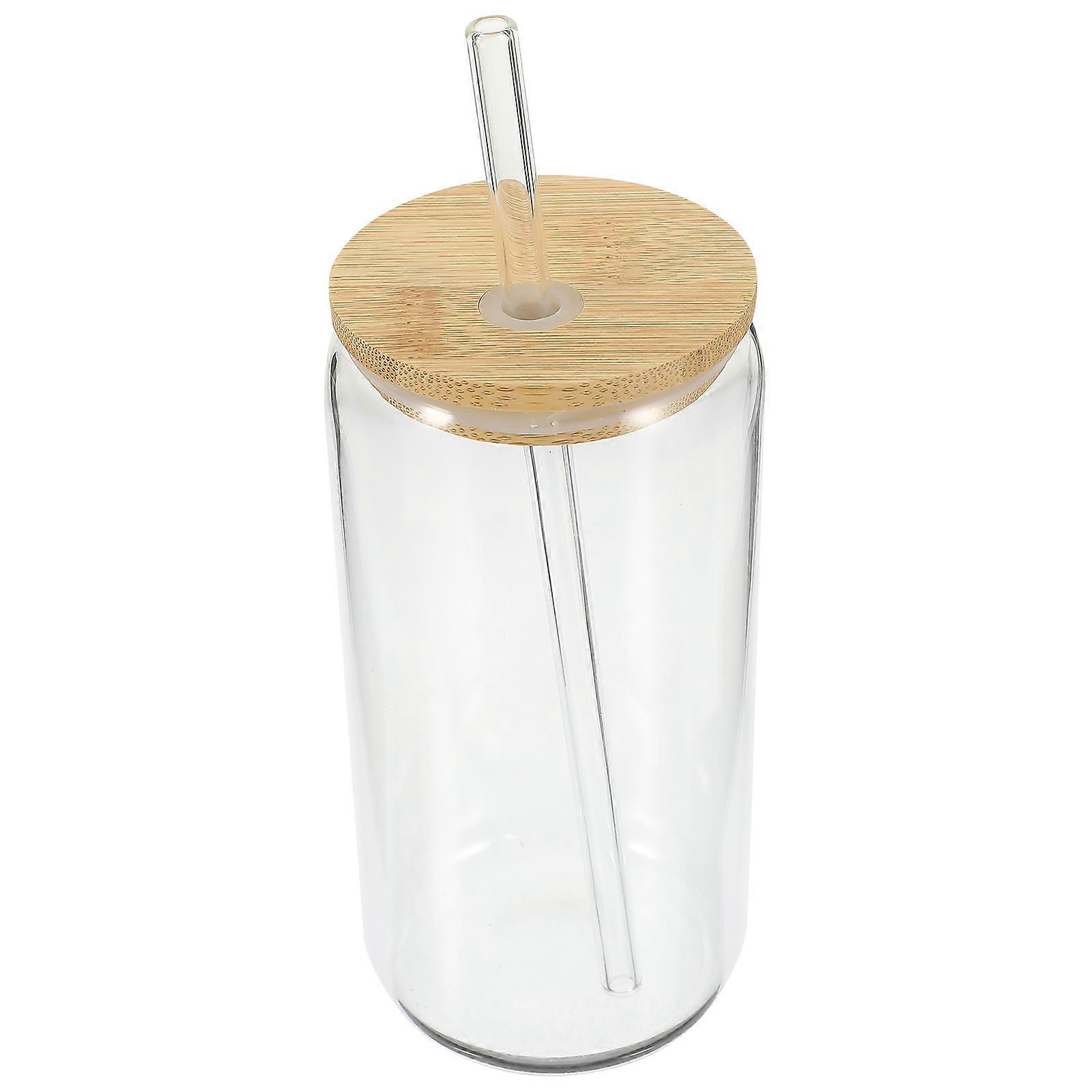 Clear Tumbler Transparent Glass Water Cup With Straw Lid Drink Container Simple Design Kitchen 6.1×3×3in 1Pcs