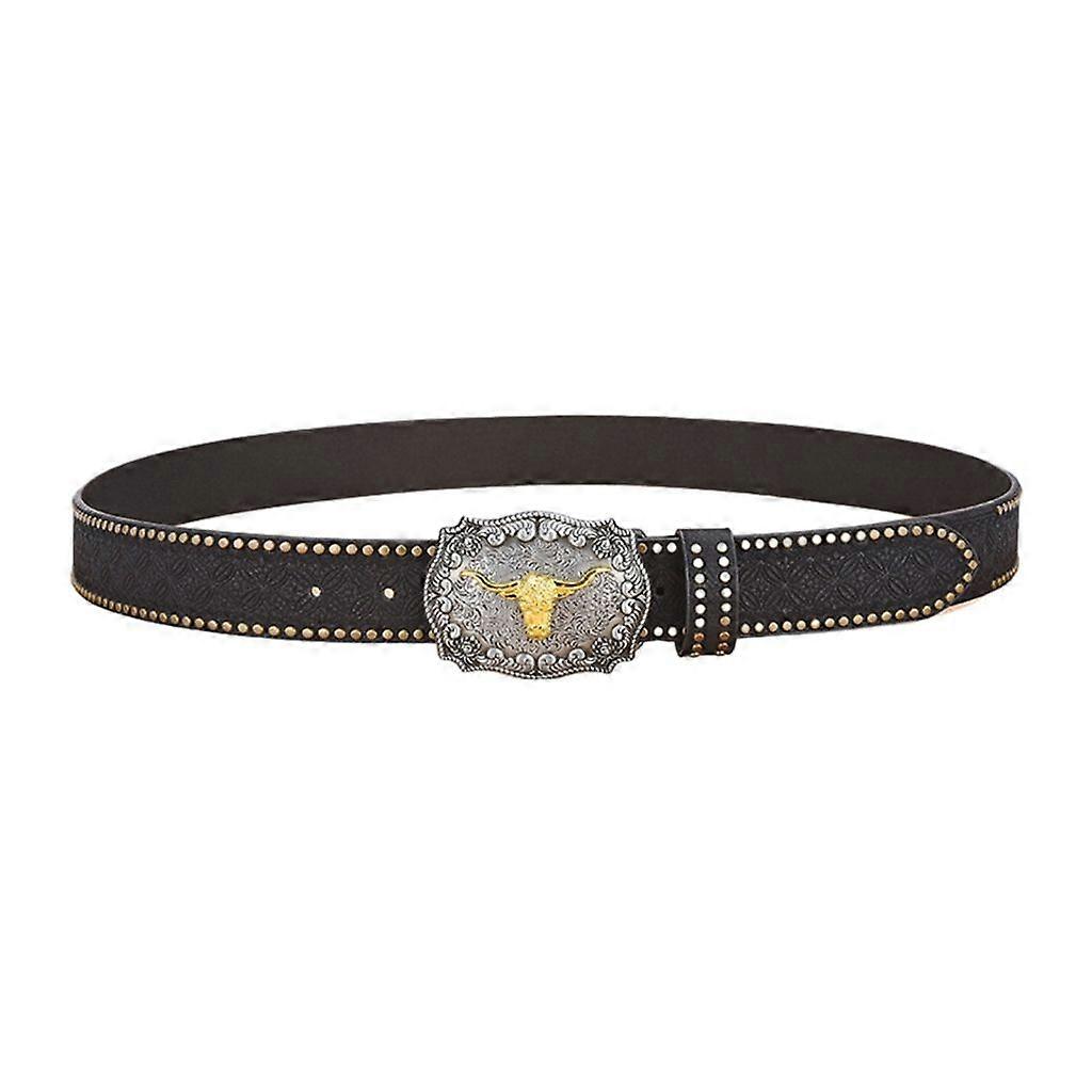 Eye-Catching Relief Bull Head Buckle Belt Embossed Pattern Waistband for Men