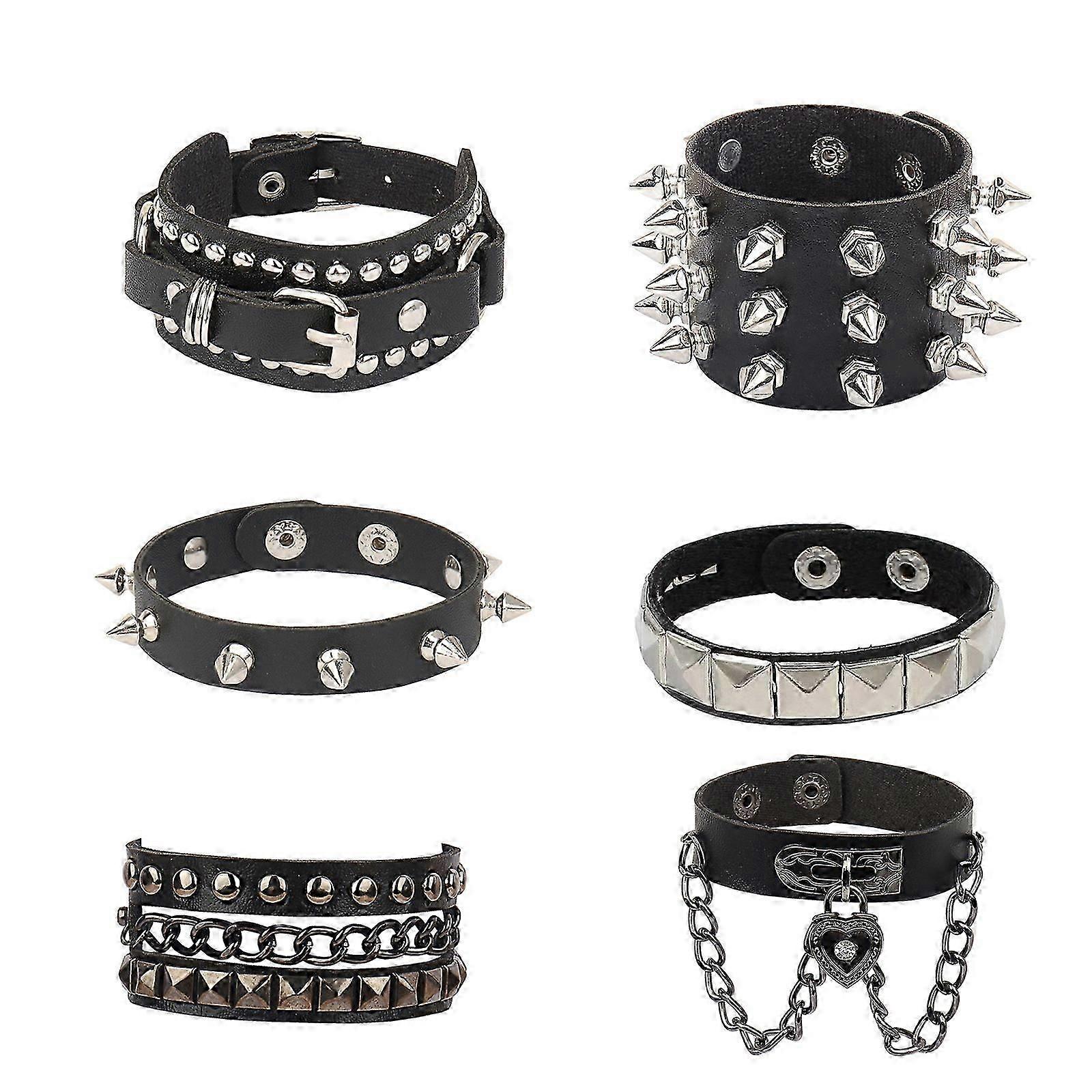 Punk Goth Studded Spike Rivet Buckle Wristband Cuff Bangle 80s Cool Rock Style Adjustable Party Favors Accessories Jewelry