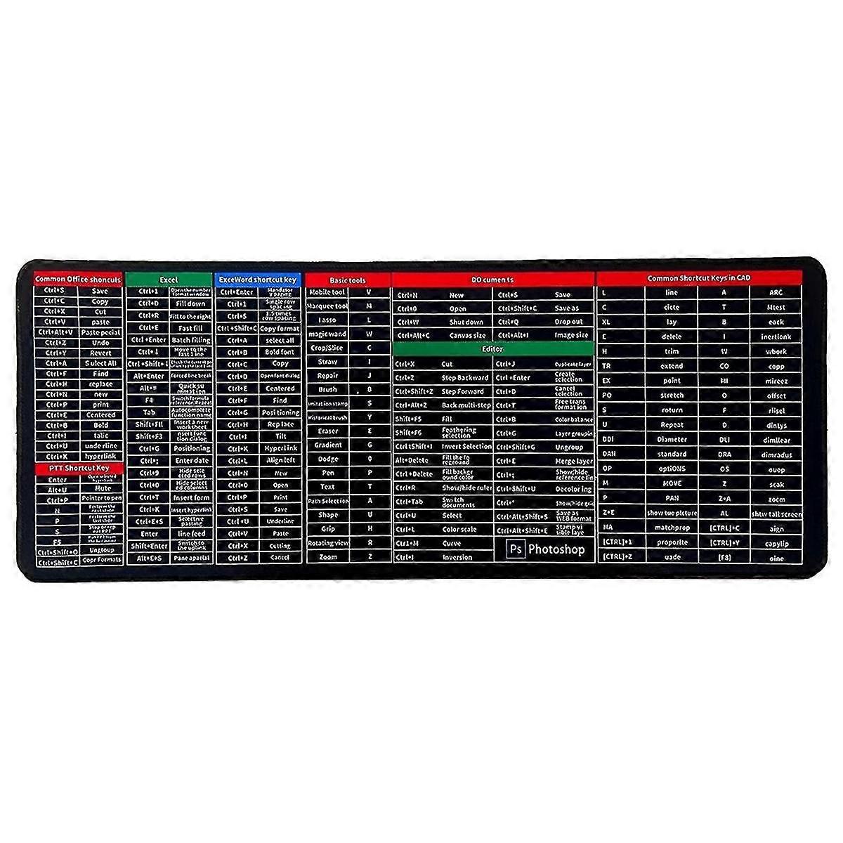Quick Key Anti- - With Office Software Shortcuts Pattern, Extended Rubber Mouse Pad (31.5 X 11.8in)
