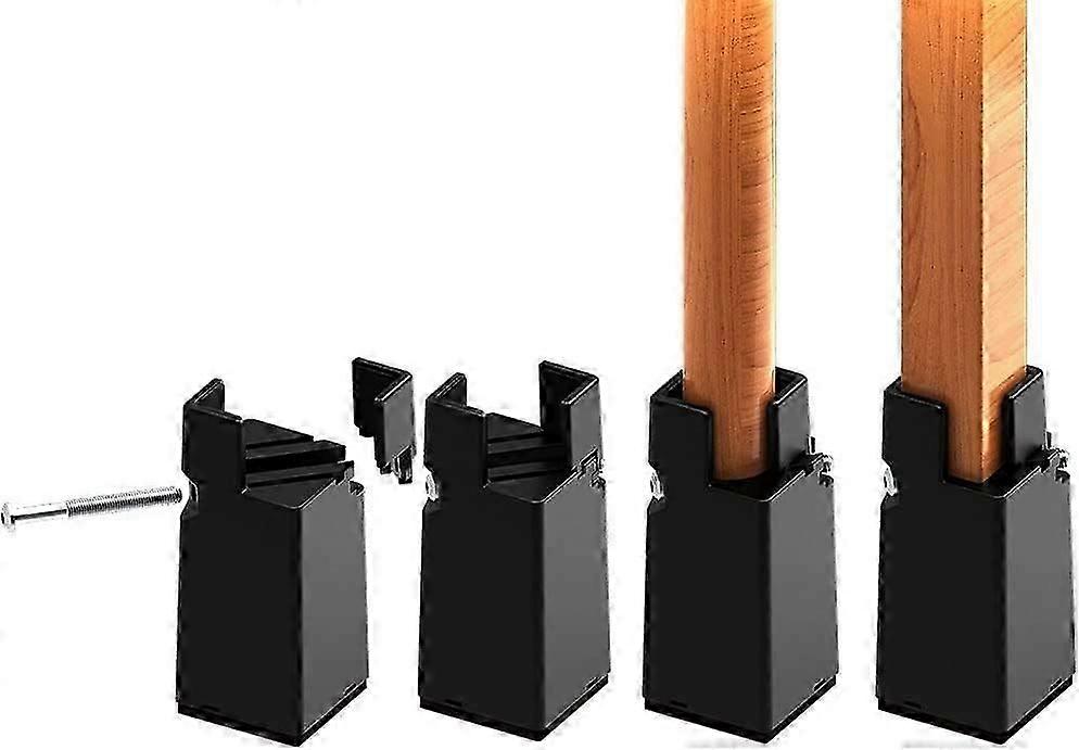 High Quality MaterialsSet of 4 Adjustable Riser Bed Legs made of durable and durable rigid plastic that can support the weight of the heaviest furniture in your home or office and safely support up to 2000kg ( 4400 pounds). They don't creak like other bed risers. High-density felt bottom glides protect your hardwood, ceramic, linoleum and carpet floors from scratches and scuffs. Riser Table Legs with Screw ClampThe grip of other stool boosters is not enough, they can easily fall off. To solve this problem, we have improved the adjustable bed heights with screw clamp. Use screw clips to adjust the fixation, wrapped furniture legs are not easy to fall off. Adjustable Width4 inch booster chair legs. Suitable for round or square legs with a width of 22mm/0.8' to 42mm/1.6". Total height: 134mm/5.3in, Actual High Height: 103mm/4inch. NOTICED : Not suitable for slanted furniture legs. Create Useful SpaceNot only storage space under beds, but also extra height for vacuum cleaners or robotic vacuum cleaners to work more flexibly. They also make it easier for older people to get in and out of bed. Increase the height by 100mm on beds, sofas, armchairs, tables and other heavy stationary furniture to avoid shoulder and neck pain caused by low furniture height.