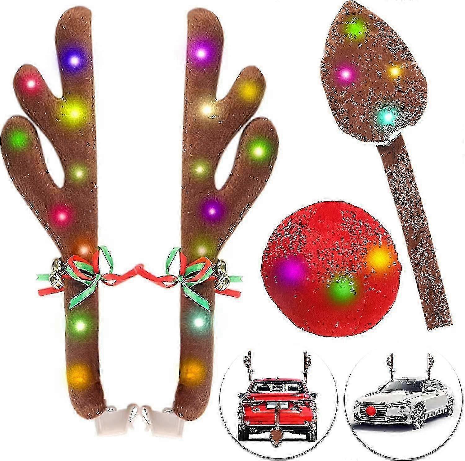 Reindeer Antlers for Cars with LED Lights, Nose and Tail Kit