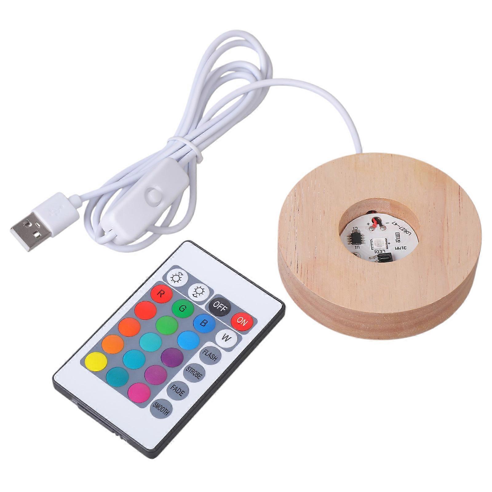 Resin Art Display Wood LED Adjustable Display Base 12 Colors RGB LED Base Vase Light with Remote Control DIY Night Light Diameter 8cm