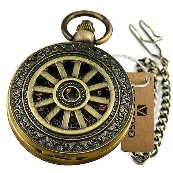 Retro Engraved Bronze Mechanical Pocket Watch Hand-winding Fob Chain Vintage Watch