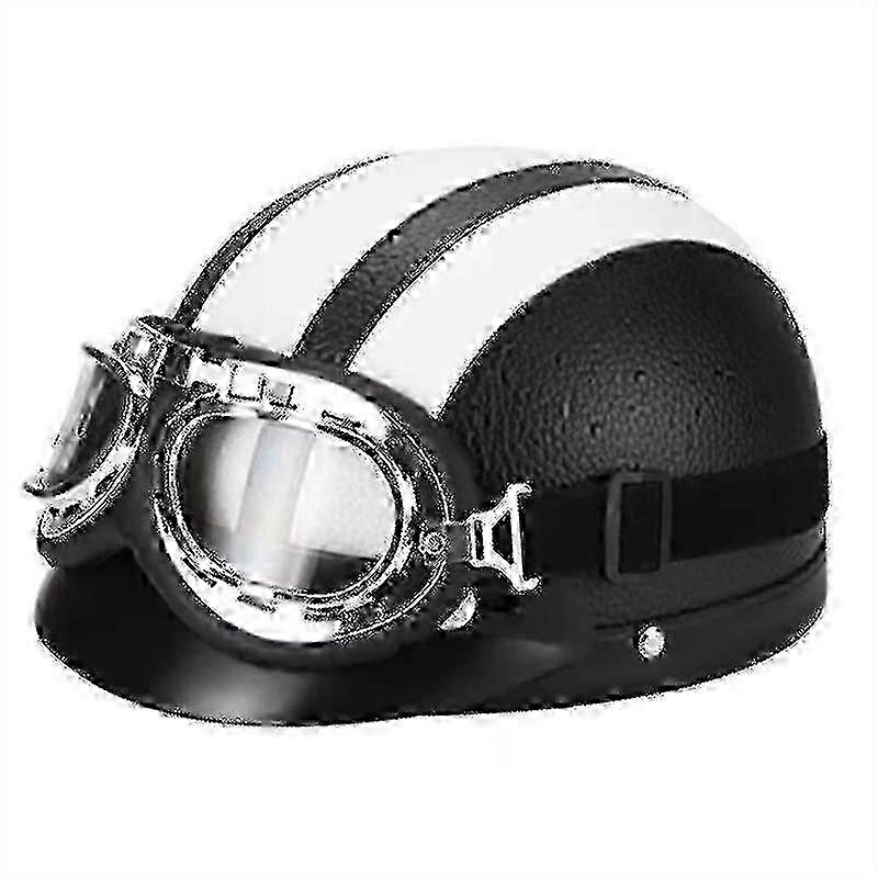 Retro Motorcycle Leather Half Helmet With Goggles