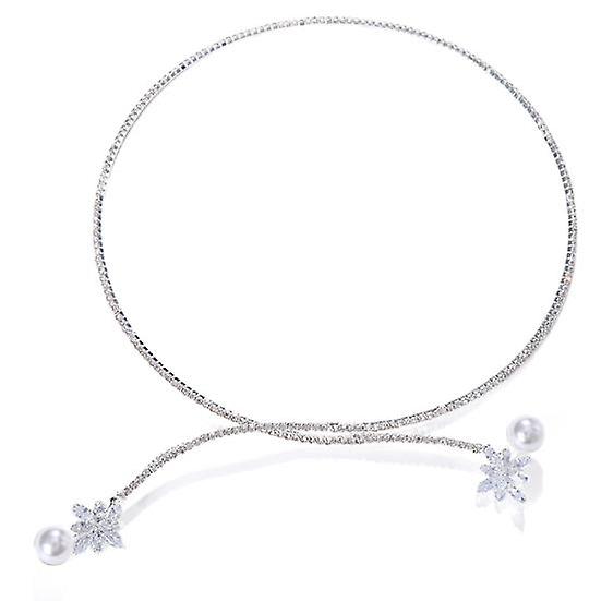 Retro Open Design Women Necklace Shining Rhinestones Inlaid Cubic Zirconia Flower Shape Faux Pearls End Opening Necklace