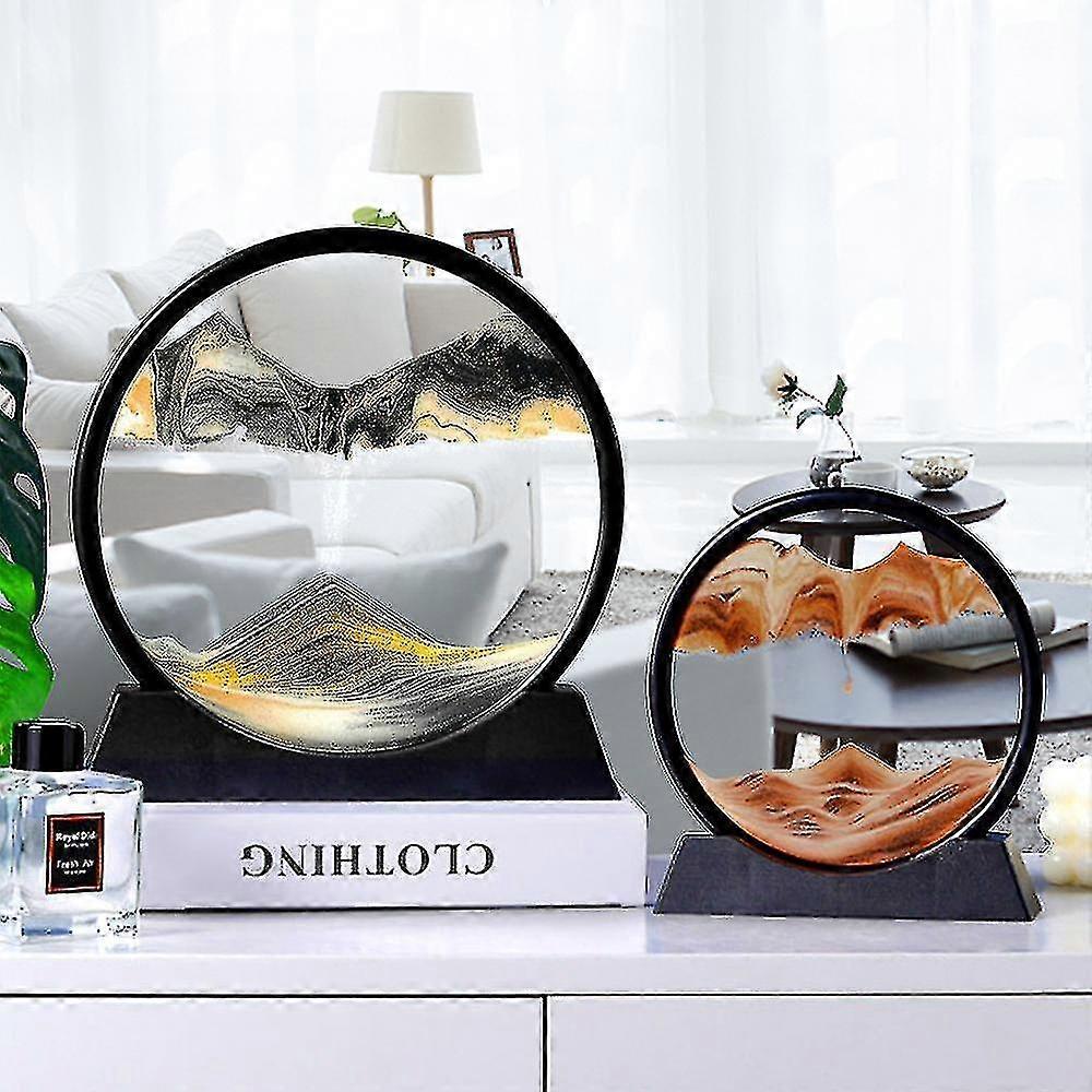 Moving Sand Art Picture Round Glass 3d Hourglass Deep Sea Sandscape In Motion Display Flowing Sand Frame 7/12inch For Home Decor