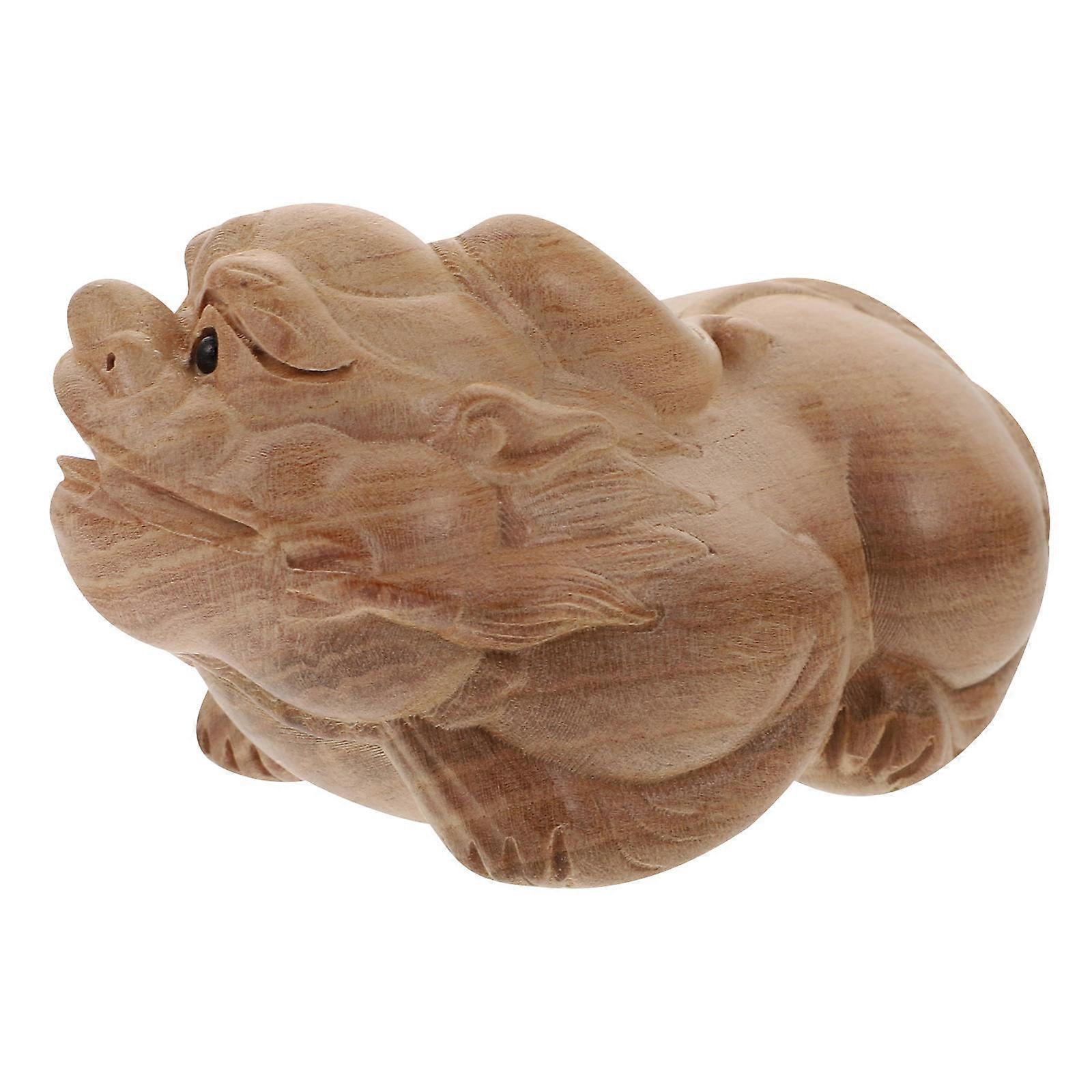 Peach Wood Carved Animal Statue Tea Table Decoration for Decor 2Pcs