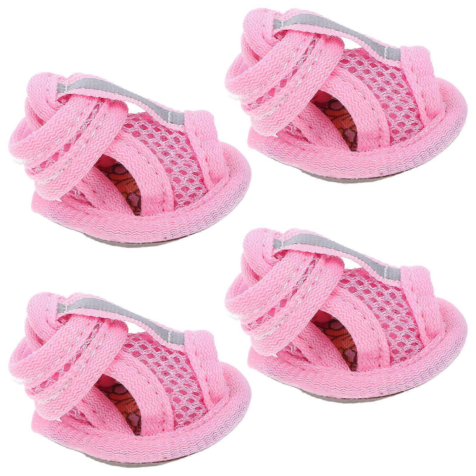 Sandals For Dogs 4Pcs Summer Breathable Pet Shoes Pink Size 1 Anti-Slip Round Toe For Walking On Pavement
