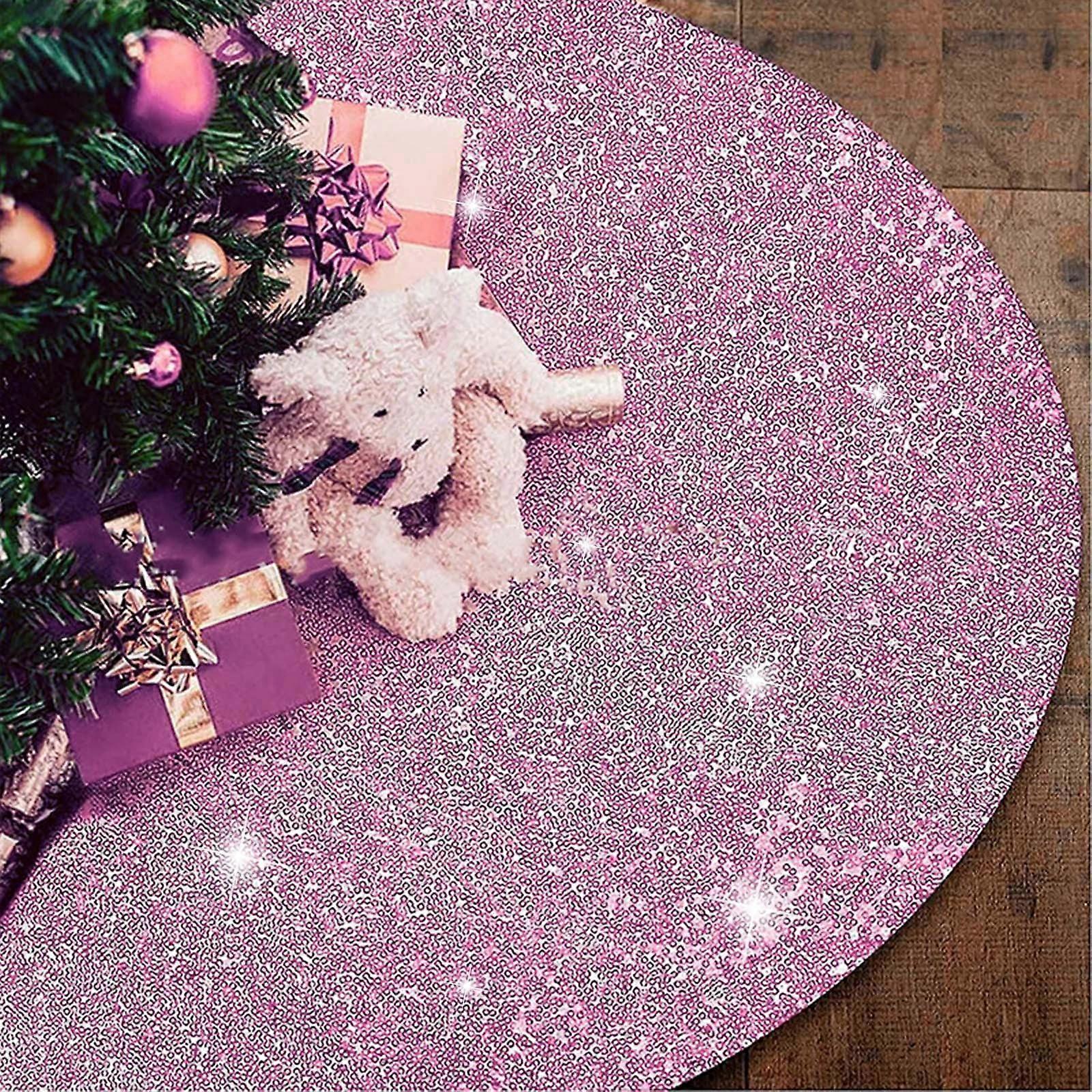 SDJMa Christmas Tree Skirt 24 Inch Sequin Velvet Tree Mat Sparkling Shiny Sequined Christmas Tree Skirt for Winter Holiday Christmas Decor,Pink