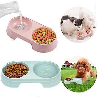 Double Cat Bowls, 2-Piece Pet Food and Water Combo Set with Stand, Tilted antl-Slip Feeding Dishes for Cats, Kittens, and Small Breed Dogs in Pink and