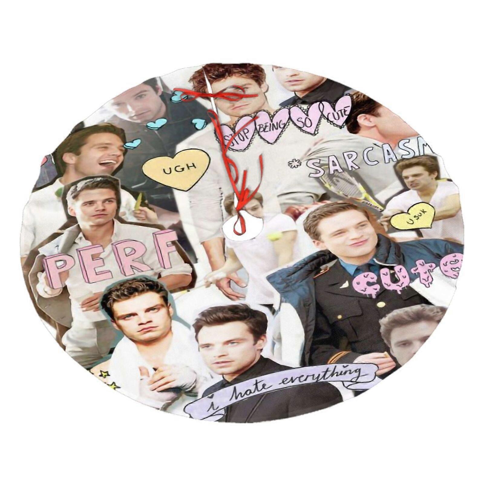 Sebastian Stan Christmas Tree Skirt, Soft And Funny Merry Christmas Tree Collar Farmhouse Xmas Holiday Decoration 36"