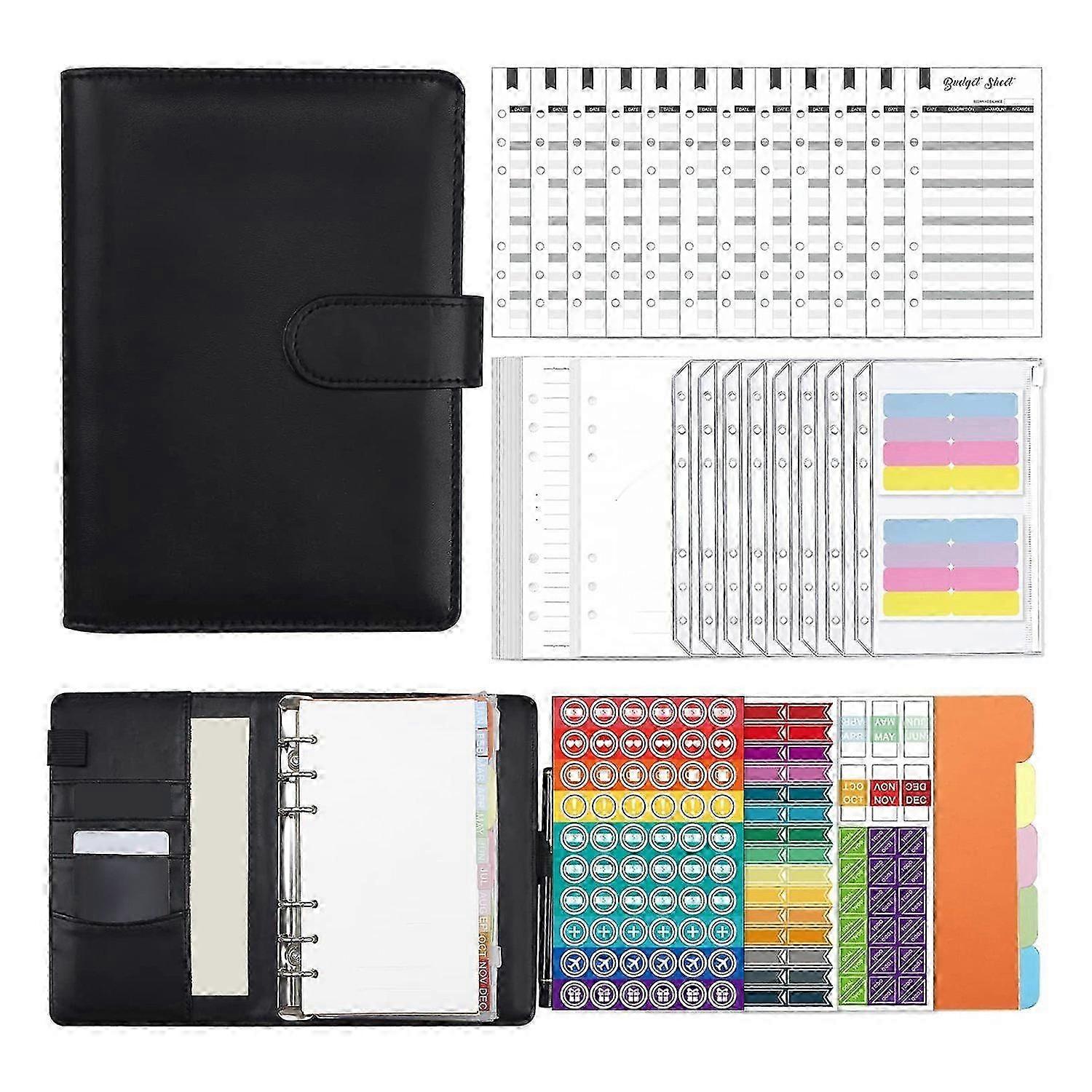 A6 Budget Binder with Zipper Envelopes & Cash Envelopes (Black)