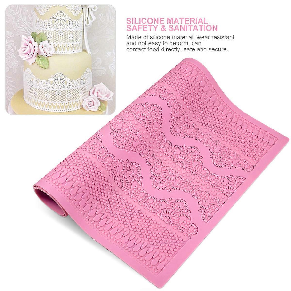 Silicone Cake Mat 2Pcs Embossing Tool Ideal For DIY Food Projects 15.2 X 11.2 Inches Pink Baking Accessories