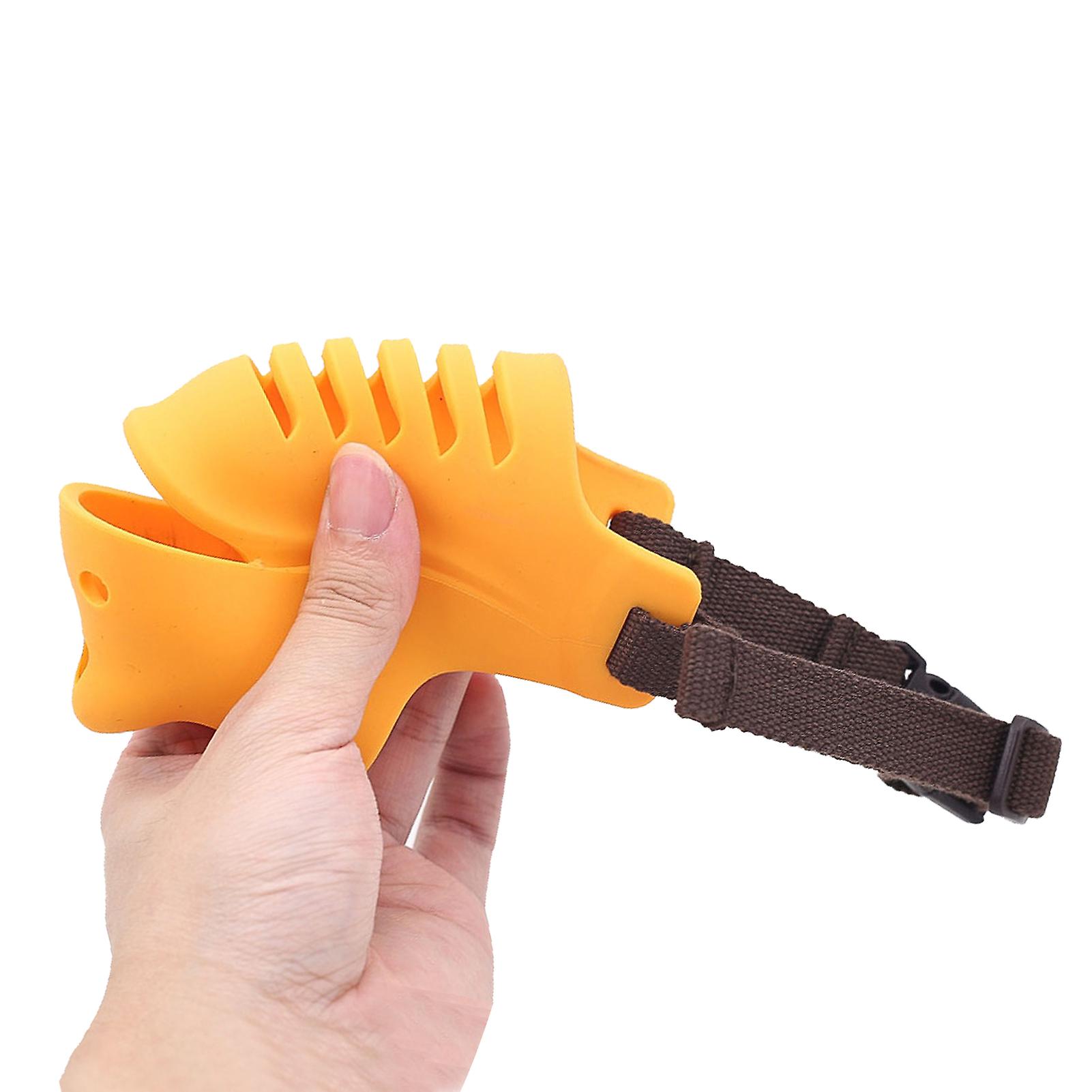 Dog Silicone Mouth Cover Bite and Bark Prevention Breathable Adjustable Dog Muzzle for Dogs Yellow L (Mouth Circumference 16‑18cm / 6.3‑7.1in)