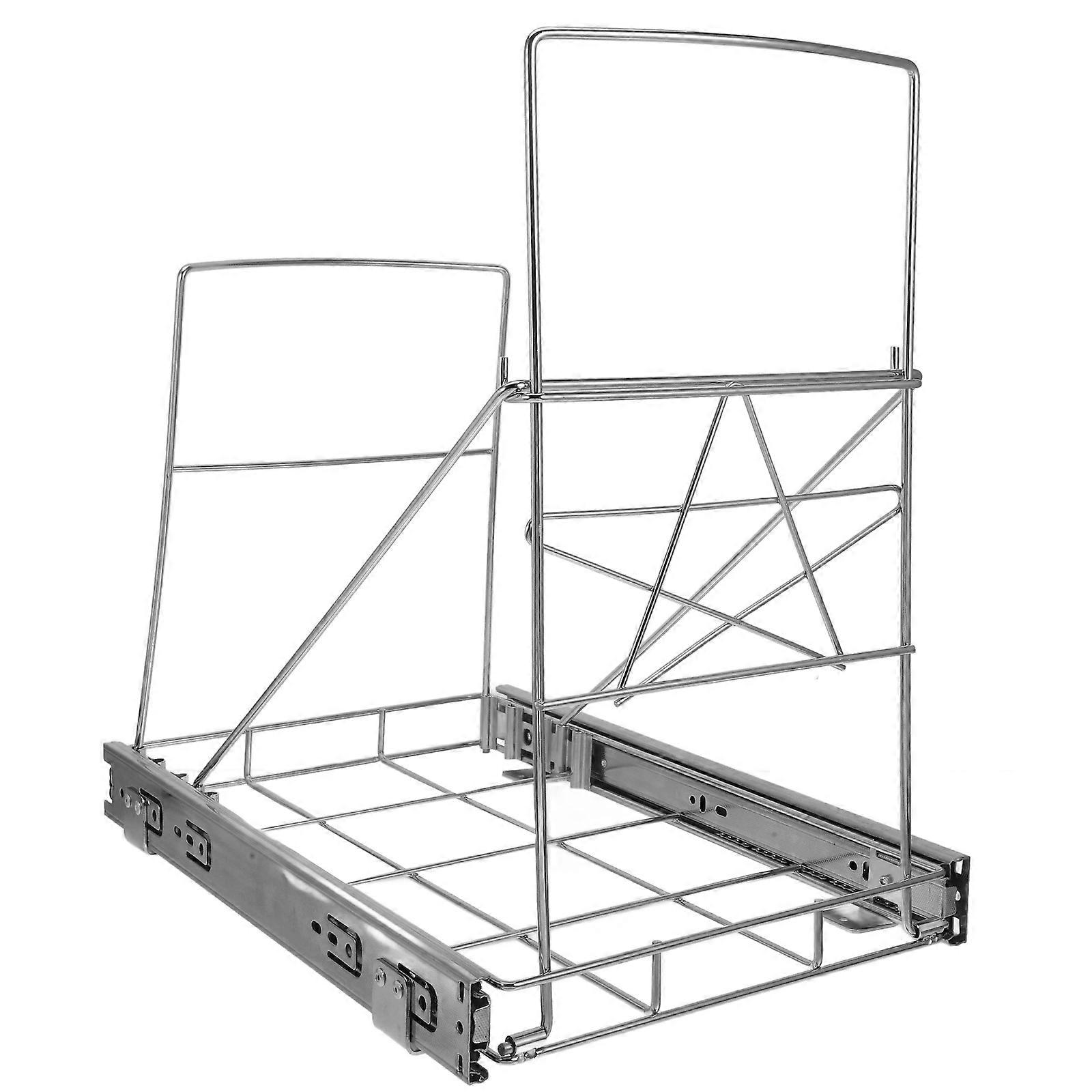 Silver Stainless Steel Trash Can Pull Out SlideOut Shelf for Bathroom with Storage Basket Adjustable Size