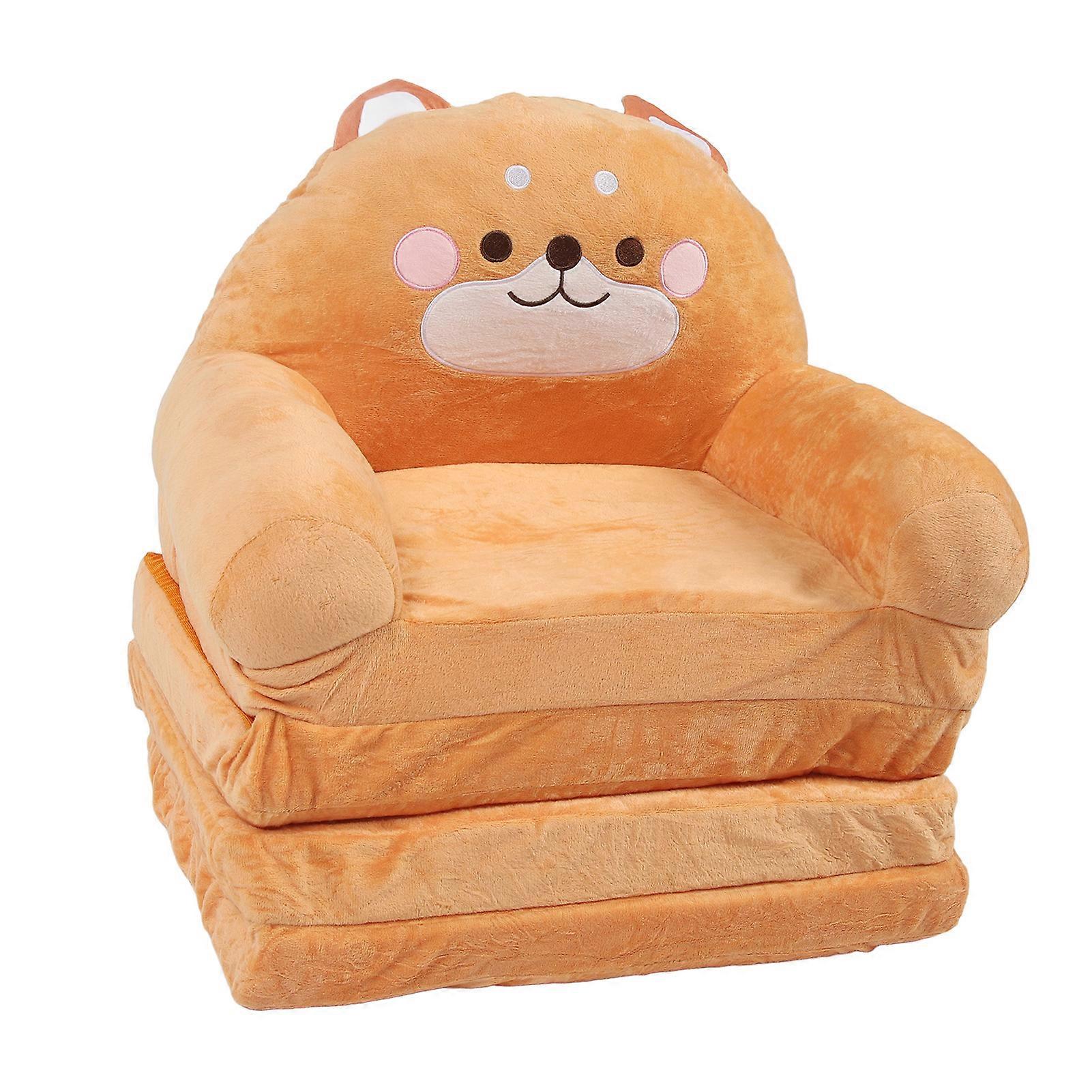 Kids Folding Sofa Plush Fabric Sponge Cartoon Pattern Toddler Flip Open Couch for Rest Reading