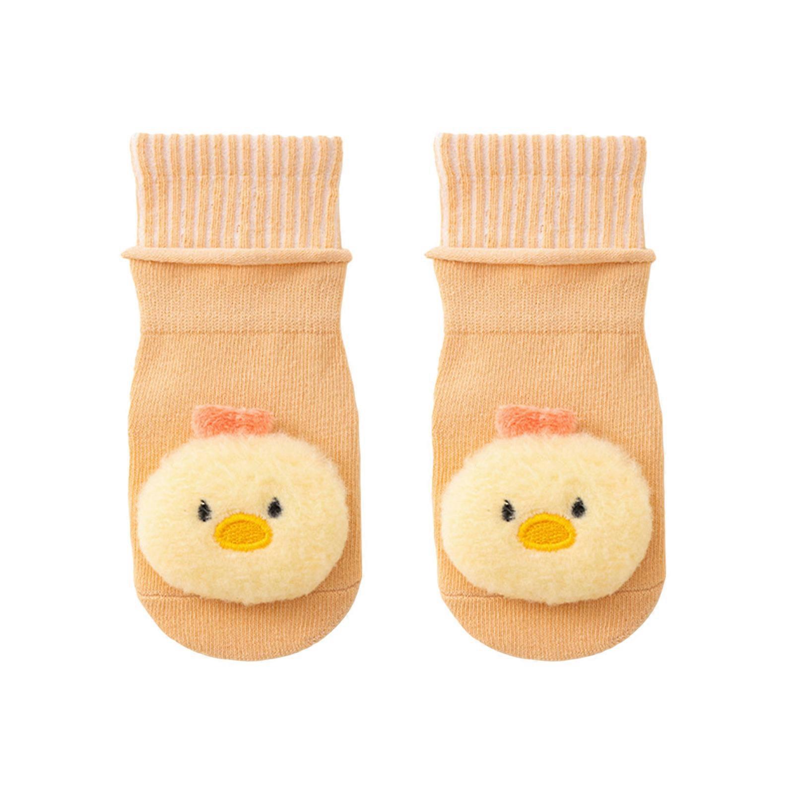 Infant Cartoon Floor Socks Nonslip Rubber Grip Cotton Socks KneeHigh Socks Prewalker Floor Socks 0-3age Baby FootWarmer Yellow chick S 0 to 1Y