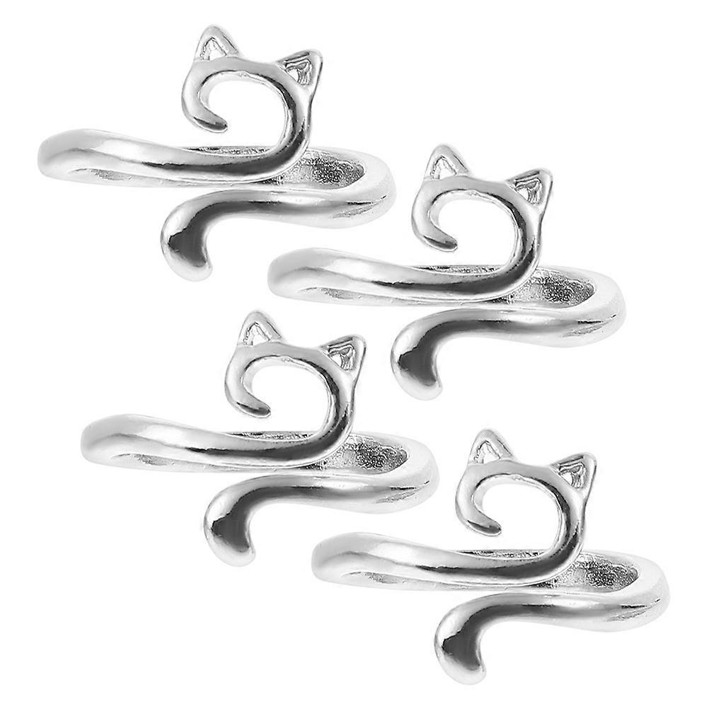 Cute Adjustable Alloy Cat Rings for Women and Teen Girls with Unique Design Silver Pieces