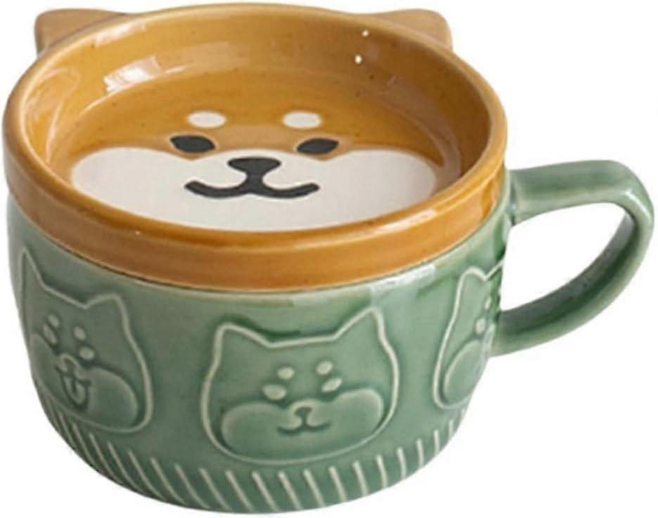 Cute Ceramic Shiba Inu & Panda Coffee Mug with Lid - Green Home Breakfast Cup for Milk & Water - Ideal Gift for Couples