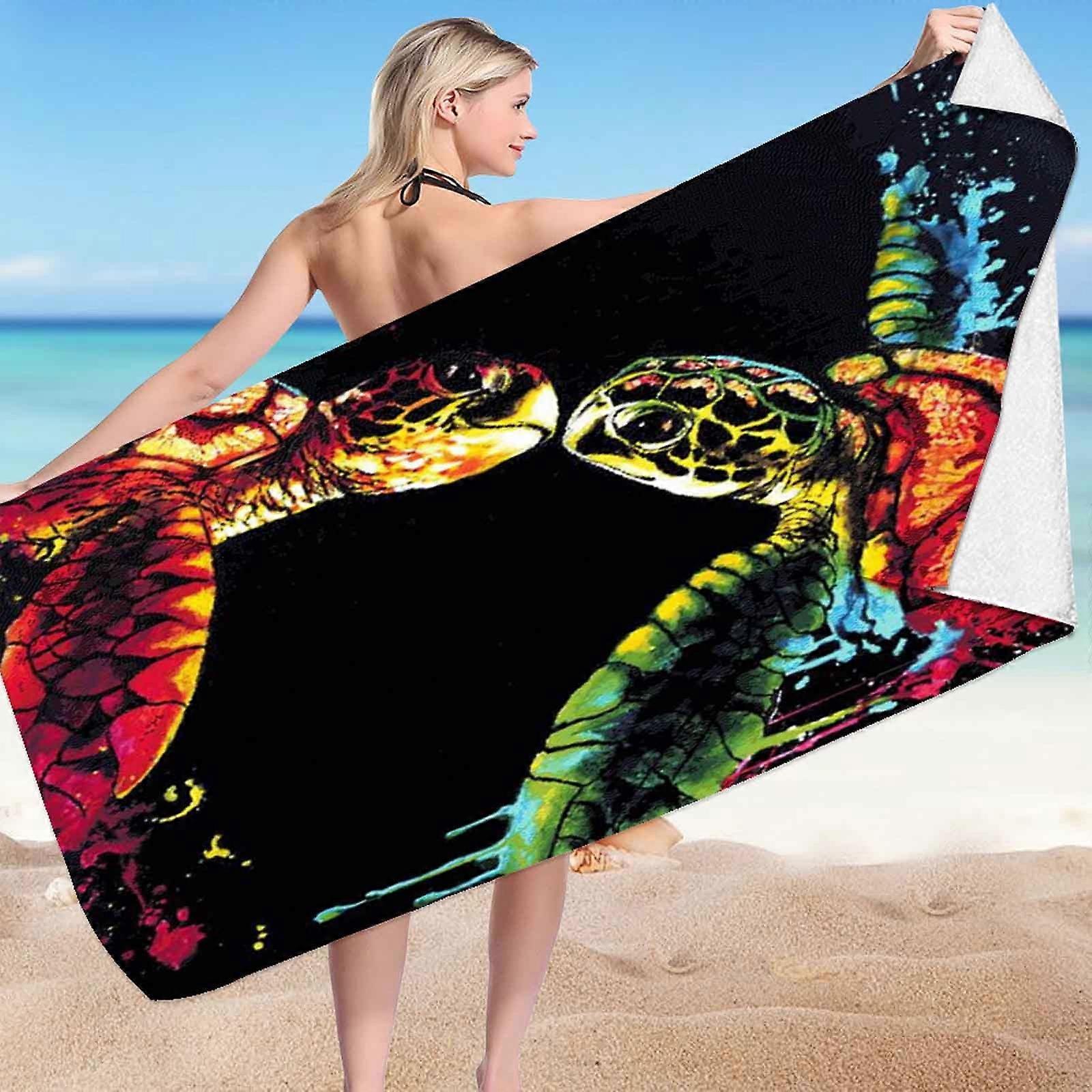 Cute Marine Animals Beach Towel - Microfiber Double-Sided Velvet Turtle & Octopus Design, Oversized Swimming Bath Towel Clearance