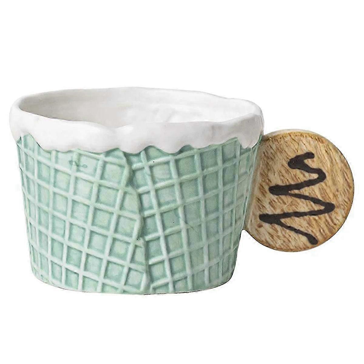 Cute Green Ceramic Cookie Water Cup with Round Handle - Adorable Mug for Hot & Cold Beverages