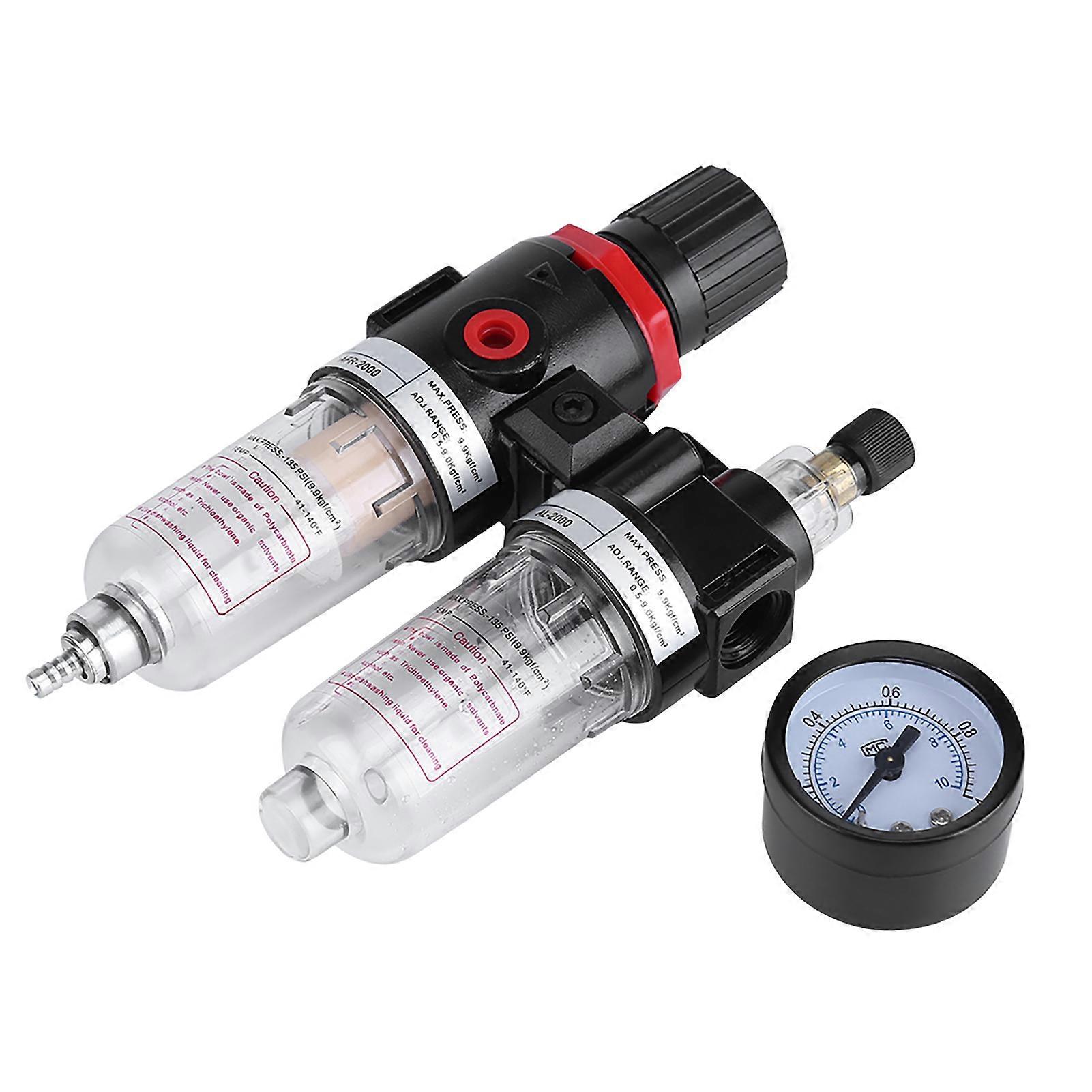1/4'' Air Filter Regulator Lubricator - Moisture Trap Oil Separator for Water Pressure Compressor