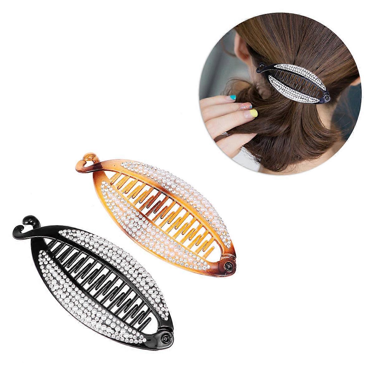 Hair Clip Claw Banana Hair Clips for Women Fashionable Ponytail Holder Strong Tension Tortoiseshell with Pearl and Crystal Mix 11.50X5.00X1.00CM 2Pcs