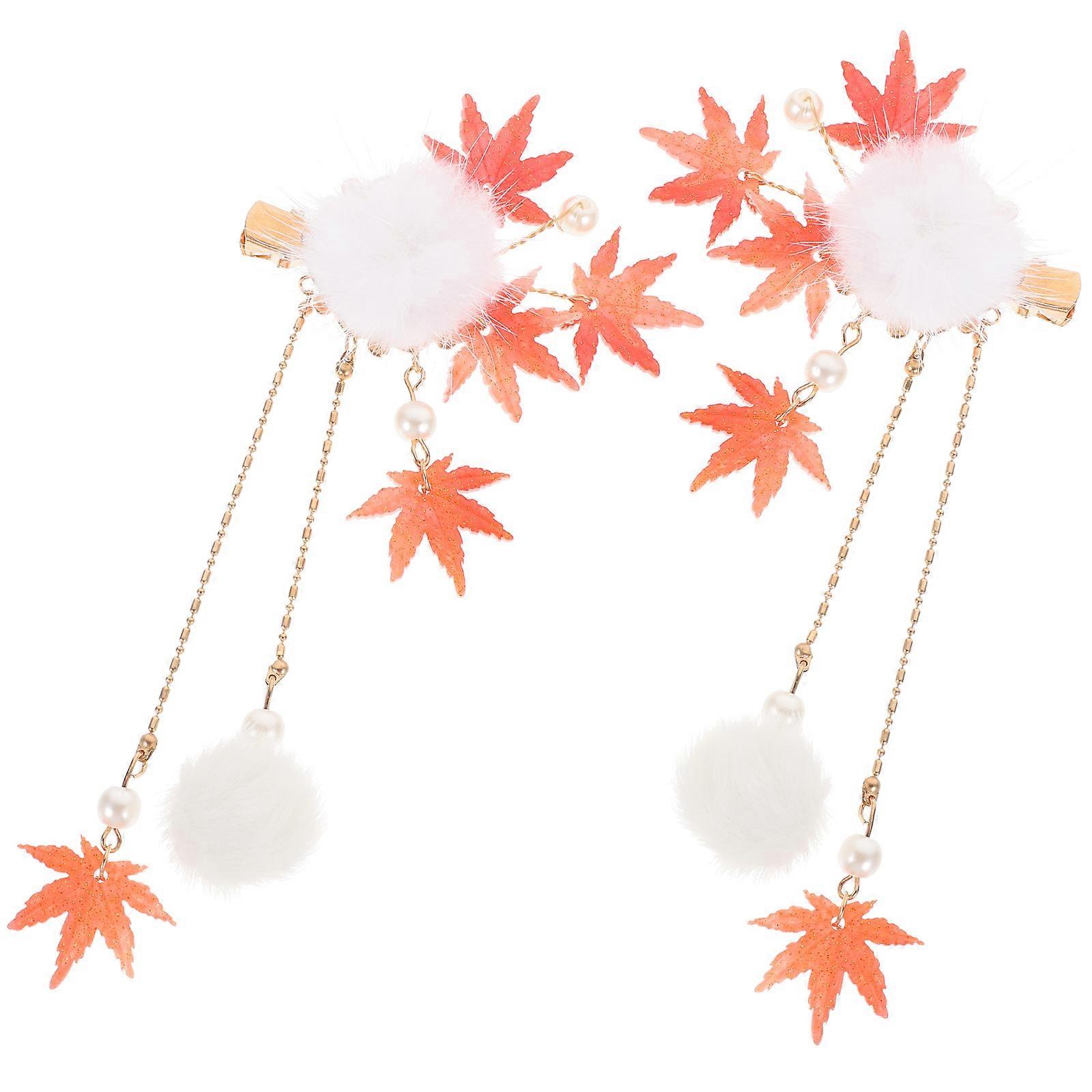 Hair Clips for Teen Girl Maple Leaf with Tassel Accessories 4Pairs