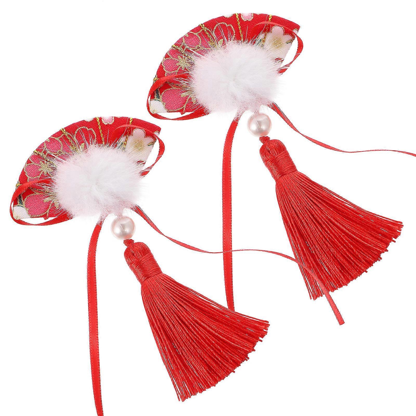 New Year Hair Clip Fan Shape Tassels Hair Clips for Kids 1Pair