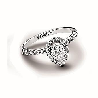 Srebrny połyskujący pierścionek z aureolą gruszki
